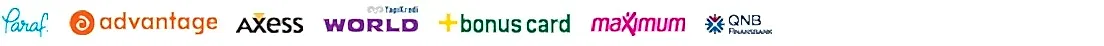 Türkiye' nin en çok kullanılan kredi kartlarına yönelik tüm ürünlerimizi 18 taksitle satın alabilirsiniz. Bonus, World, Paraf, Axess, CardFinans, Maximum kredi kartlarını mobilya ve dekorasyon alışverişinizde kullanabilirsiniz.